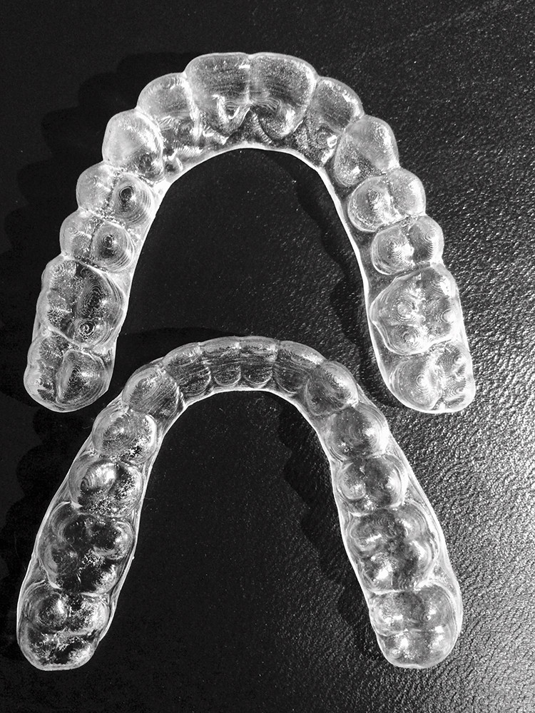 Enclosed are the upper and lower trial aligners; the upper one is the larger aligner ( Photo A).